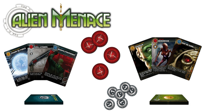 Inspiré des jeux vidéo de type FPS (First Person Shooter), Alien Menace est un jeu de cartes dynamique dans lequel 2 joueurs s'affrontent pour le contrôle d'un portail de téléportation. Les joueurs vont rivaliser, lors de chaque combat, à l'aide de cartes spéciales et de jetons leur permettant de surenchérir jusqu'à devenir le plus fort.