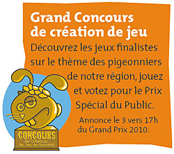 Le grand concours de création aura pour thème, cette année, "les pigeonniers de notre région". Les joueurs seront invités à voter pour leur jeu préféré et le gagnant sera récompensé du prix spécial du public.