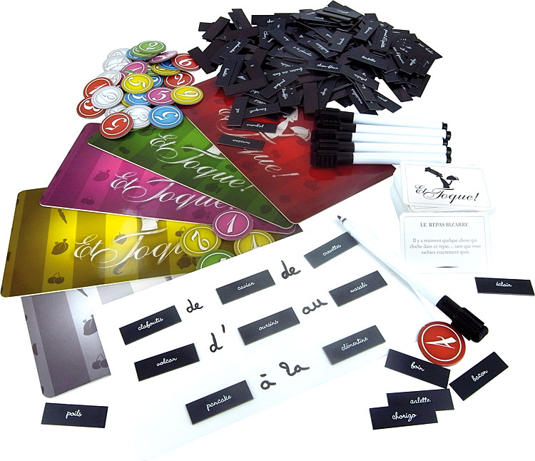 Et Toque est un jeu léger et familial qui nous propose de devenir, le temps d'une partie, un grand chef en pleine création. Cuisinez les ingrédients à votre sauce en fonction de la carte thème que vous avez pioché et faites en sorte que vos partenaires de jeu parviennent à deviner pour quelle occasion vous avez préparé ce menu...
