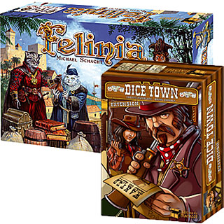 Tout d'abord Felinia, le jeu de stratégie / enchères de Michael Schacht, pour toute la famille, qui est arrivé en boutique depuis la semaine dernière, ensuite l'extension de Dice Town, du duo de coyotes à foie jaune Ludovic Maublanc et Bruno Cathala, qui débarque aujourd'hui (19 Avril).