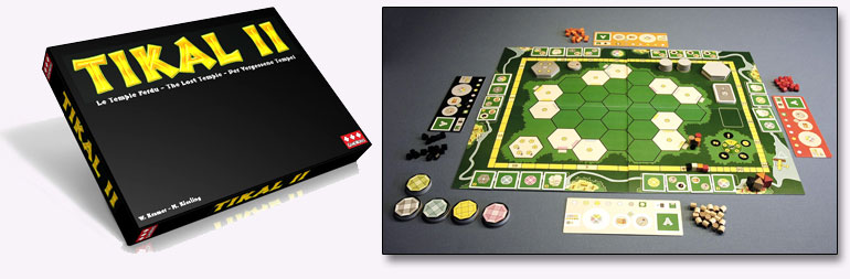 TIkal II, Le Temple Perdu, est la suite du célèbre Tikal, élu Spiel des Jahres en 1999, le dernier né de la collaboration du duo Kramer-Kiesling, sans doute l'un des plus connu dans le monde du jeu (That's Life!, Raja, Torres, Java, Mexica, Pueblo...). Un jeu tactique aux décisions épineuses et à la planification tendue.