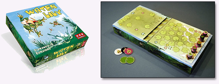 Water Lily est un court jeu de course plein de rebondissements de Dominique Ehrhard (Marrakech, Le Fantôme des MacGregor, Crazy Circus, Méditerranée, Condottiere....), un mélange de bluff et de tactique côtoyant un soupçon de chance.