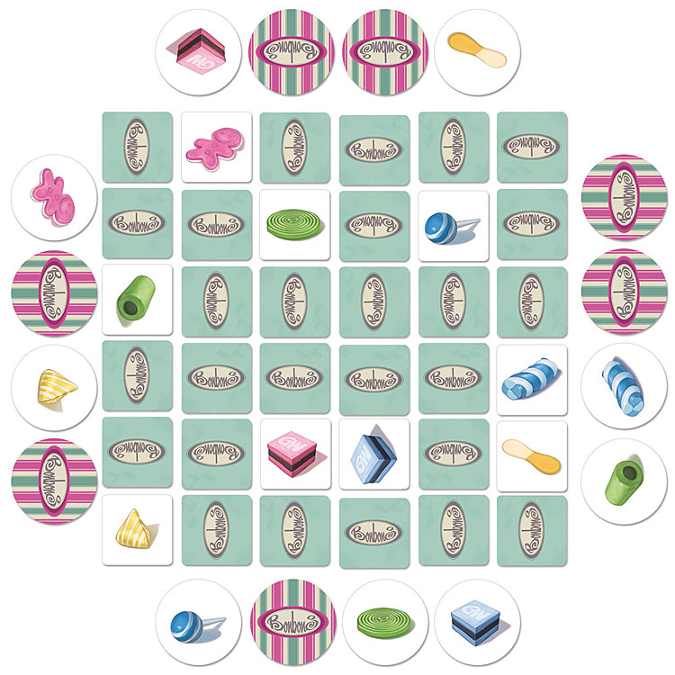 Un jeu de mémoire mignon tout plein, mais tout de même taquin. BONBONS, une gourmandise de Marc André, mis en sucre par Mathieu Leyssenne.