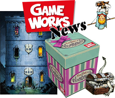 Mais qu'est ce qu'ils nous concoctent de bien alors chez Gameworks ? Tout d'abord Bonbons, un jeu de mémoire, qui se présente dans une boite de...Bonbons. Ensuite Tschak! est un jeu de plis dans lequel des aventuriers tentent de s'emparer de trésors gardés par des créatures diverses. 2 jeux qui viendront intégrer la gamme de petites boites dans laquelle on trouve déjà Jaipur et Sobek...