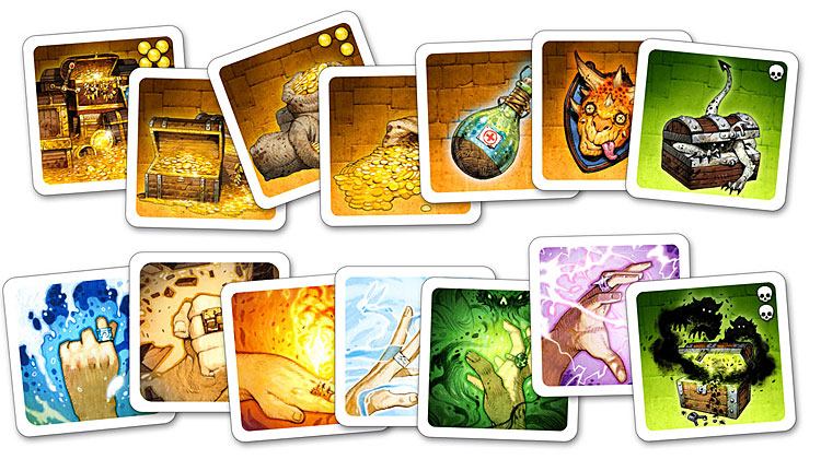 À chaque manche, les mains de cartes passent de joueur en joueur, et tout le monde aura ainsi eu les mêmes aventuriers en main. Plus aucune place laissée au hasard ! Enfin si, quand même un peu :-)