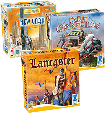 Cette fois-ci ce sont les jeux Queen Games qui sont à l'honneur, les heureux élus : Lancaster (l'occasion de découvrir le jeu nominé au Spiele 2011 dans la catégorie "expert" en compagnie de 7 Wonders et Strasbourg), Alhambra New York - le jeu de cartes - et Paris Connection.