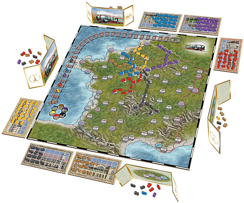 En réalisant des échanges, les joueurs devront redoubler d’habileté et de bluff pour tenter d’acquérir le plus de parts possible auprès des compagnies de chemin de fer les plus puissantes.