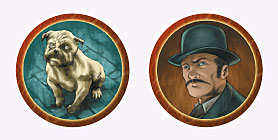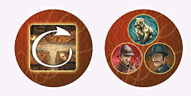 Le Verso permet de déplacer le pion Holmes ou le pion Watson ou le pion Chien Limier d'1 ou 2 cases dans le sens des aiguilles d'une montre.