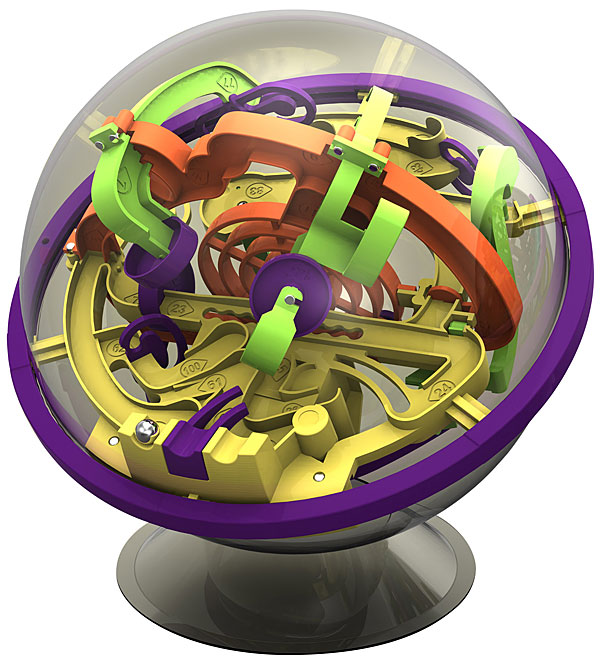 Perplexus est une sphère contenant une bille qu’il faudra faire progresser à travers un labyrinthe étonnant !