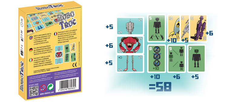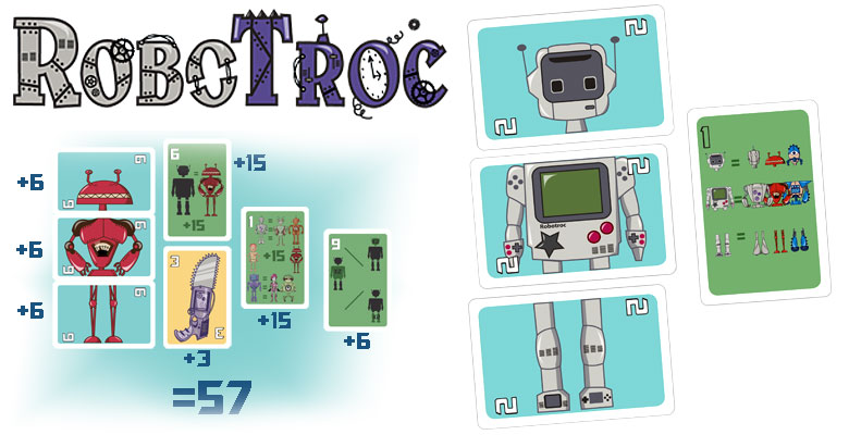 Dans le monde de RoboTroc, des scientifiques un peu déjantés se livrent une concurrence sans merci pour concevoir le robot le plus puissant à partir de pièces de récupération, protection de l’environnement oblige. Incarnez l’un de ces scientifiques et construisez le robot le plus fort avec les pièces que vous arriverez à ramasser pendant la partie. Il vous faudra une tête, un corps, des jambes et des armes. Des cartes bonus vous permettront de renforcer votre robot. Soyez plus malin que vos adversaires pour réaliser la combinaison la plus forte.