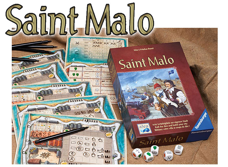 Saint Malo est un jeu d'Inka et Markus Brand pour 2 à 5 joueurs à partir de 9 ans (durée moyenne : 30/45mn).
