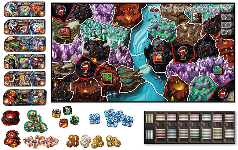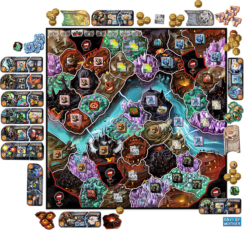 Smallworld Underworld est donc un jeu complet qui se déroule sous terre, toujours basé sur le même univers fantastique peuplé de civilisations fantasques et décalées qui luttent pour conquérir des régions dans un monde souterrain qui semble vraiment bien étroit...