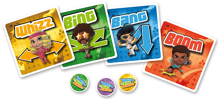 Whizz… Bing… Bang… Boooom… Ici il faut suivre le tempo, réagir quand c’est à soi de jouer, faire le bon son et surtout garder le rythme ! Parce qu'à chaque erreur, le joueur qui se trompe est sanctionné par le plus rapide : un Whizz, ça va, un Bing, il faut se reprendre, un Bang, ça sent le roussi, un Boom et c’est fini !