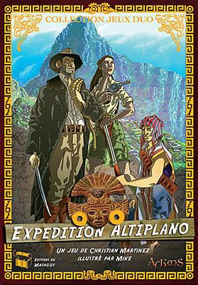 Pour ceux qui aiment les aventuriers aux muscles puissants, à la déduction intellectuelle rapide et imparable, Expedition Altiplano est fait pour eux. Ce jeu à deux retranscrit très bien l'ambiance de la quête trésorière des temps moderne. Les deux joueurs s'affrontent dans un duel remplit de subtilités avec des cartes Expedition, Artefact et Personnage. La difficulté réside dans le fait de bien connaître les pouvoirs des cartes. Le plateau, une grande feuille pliée, sera à long terme décrépi mais pour le reste chapeau aux illustrateurs. C'est beau !