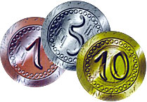De même on place en évidence sur la table, les 24 tuiles "Trésor". Chacun des 4 trésors est représenté 6 fois et porte une valeur différente.