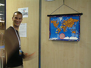 On va en profiter pour tester cet excellent jeu d'adresse (et de conquête) en sa compagnie. Bon je vais vite tuer le suspense : il a gagné sans problème, notre opposition ayant été assez faible. Et comme nous avons trouvé un exemplaire à l'entrejeux, nous repartons avec une map dédicacée .