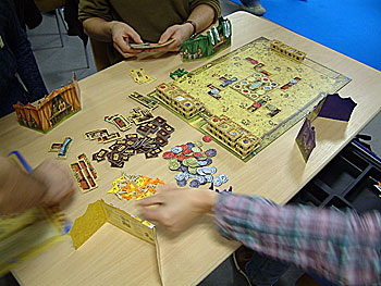 ...alors on va essayer Arkcadia, à la table juste à coté , qui s'avèrera être un bon petit jeu de placement.