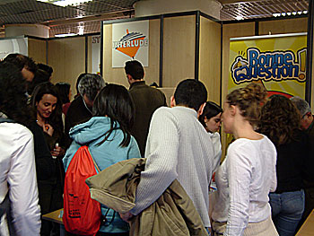 ...mais chez interlude il y a carrément foule ! Kezako accroche, dur pour s'approcher. Nous finirons quand même par y arriver et on pourra même y tester un proto de "Bonne question" en compagnie de Marco et sa femme et de Matthieu d'Epenoux. Le jeu n'est pas encore totalement finalisé, mais promet d'être fun et amusant...