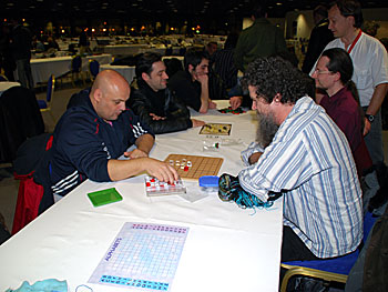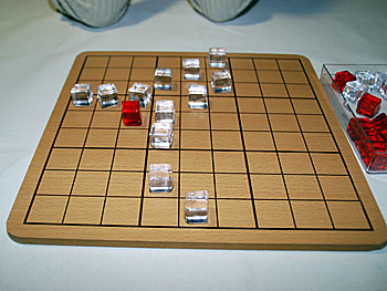 Celui là aussi est de Vincent, un jeu de connexion (dont j'ai oublié le nom !) où il faut relier les bords du plateau avec une règle d'empilage dont Vincent à le secret.