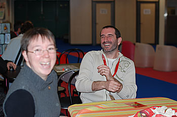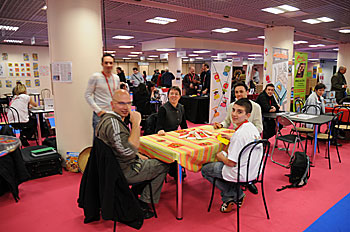 ...On a mis un tel binz qu'on a fini par attirer à notre table les spécialistes des jeux d'ambiance : les Belges à Sombrero de Repos Prod avec lesquels nous allons enchaîner une autre partie.
