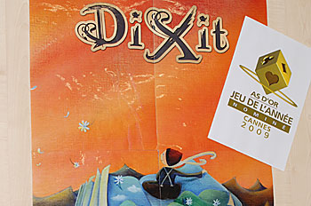 Chez Libellud, forcément on est heureux, Dixit est l'as d'or/jeu de l'année 2009 et franchement ça fait du bien de voir un jeu frais et joliment illustré l'emporter. Les visuels de Marie Cardouat ont un style naïf que le jeu porte comme un gant, le mécanisme est épuré et facile d'accès. Un beau vainqueur !