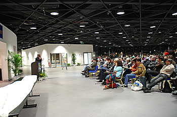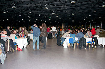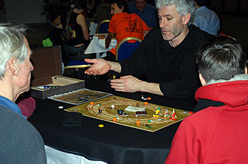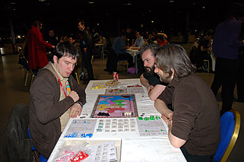 Certains soirs, nous avons eu droit à un colloque où certains acteurs du milieu ludique ont fait profiter de leurs expériences personnelles, ici Bruno Cathala nous expliquant les ficelles de la création...