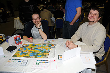 Alaska, un jeu de trappeurs encore en gestation, que nous avons trouvé sympa dans la forme que nous avons essayée en compagnie de son sympathique auteur (à gauche sur la photo).