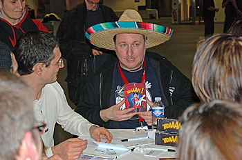 Ahaaa le stand Rallyman, sur lequel Jean-Christophe Bouvier accueillait les apprentis pilotes avec humour et entrain. Nous avons pu y pratiquer cet excellent jeu qui retranscrit à merveille les sensations du Rally : dérapages, chronos, coups de gaz, sorties de pistes, tout y est...
