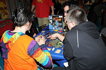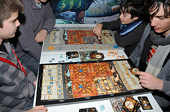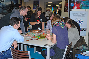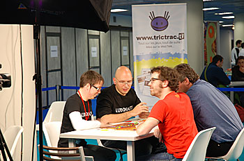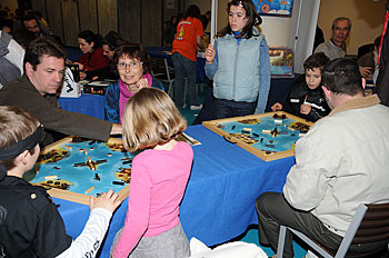 Pascal Reymond animait des parties de Paleo, son très bon jeu de pichenettes, un Dart war était aussi accroché au mur et s'offrait aux joueurs désireux de tester leur talent au lancer de fléchettes magnétiques...