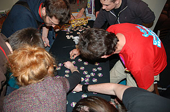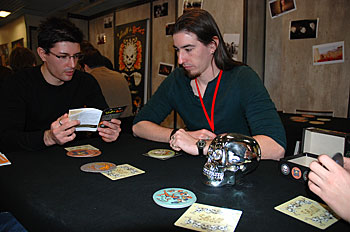 Gil en pleine explication sur 7 Wonders, lui aussi auréolé du prix spécial du jury et qui est, il faut quand même le dire, LE jeu du moment !