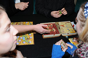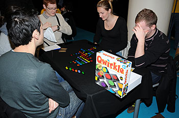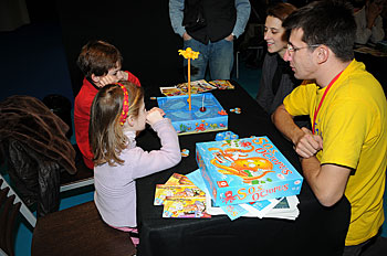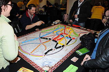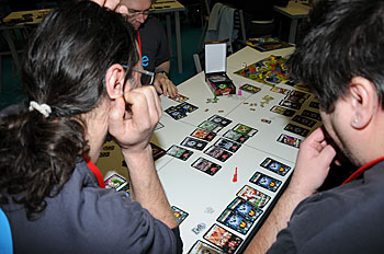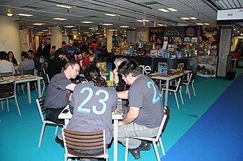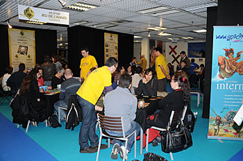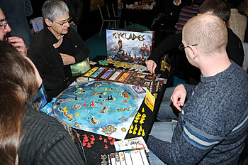 En approchant de l'espace dédié à Ludocortex, on se rend compte du nombre impressionnant de tables gérées par les sympathiques animateurs. De tables qui permettaient de pratiquer la plupart des jeux nominés ces dernières années à l'As d'Or. Par exemple, ici à droite, Cyclades...