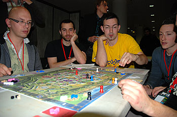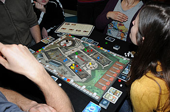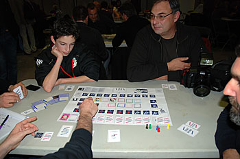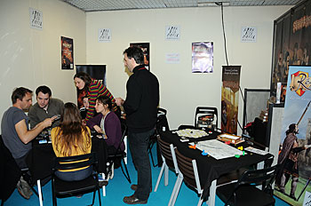 Du côté de Ludically, Chris Boelinger faisait tourner le proto d'un petit jeu abstrait. On pouvait, bien sûr, aussi pratiquer Dungeon Twister ainsi que le récent Earth Reborn...