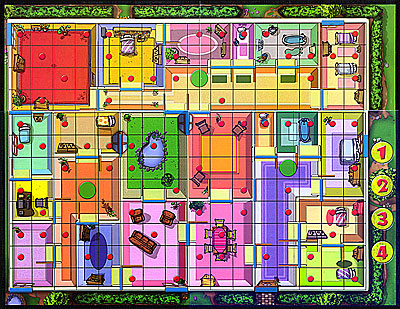 Malgré ça, le jeu souffre d'une trés mauvaise lisibilité du plateau de jeu, qui en plus d'être petit, est doté de couleurs trop vives qui le font ressembler à un patchwork. Cette mauvaise lisibilité nuit grandement à la fluidité des parties (on a un mal fou à distinguer les portes et autres fenètres au milieu de cet amas de couleurs).