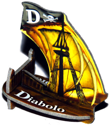 Enfin on positionne les 6 bateaux pirates, au hasard, sur les cases prévues à cet effet du plateau de jeu.