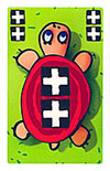 La tortue en dernière position avance de 2 cases. Si plusieurs tortues sont à égalité en dernière position, le joueur qui joue la carte choisit celle qui avance.