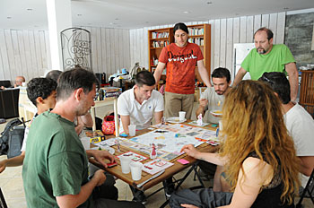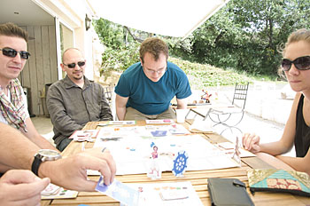 A cette table Bruno, Hicham et Jef testent un proto de Bruno...
