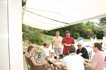 ...certains mangent au bord de la piscine...