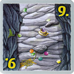 Ces cartes représentent la galerie de la grotte et portent un chiffre (entre 1 et 17) indiquant combien de pierres précieuses ont été trouvées. La carte est placée dans le prolongement de la grotte et les pierres précieuses sont partagées équitablement entre les joueurs qui se trouvent encore dans la grotte. Le surplus éventuel est posé sur la carte "diamant".