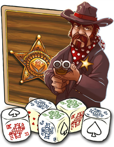 Dice Town prend sa source du côté du Yams et du Poker d'As, mais s'il en reprend le principe de base (lancer 5 dés pour faire des combinaisons), il le bonifie à l'extrême pour nous donner un jeu plus fun et plus contrôlable. Tout d'abord, ici ce n'est pas forcément la combinaison la plus forte qui fera les meilleurs bénéfices, ensuite, la possibilité de conserver ou non ses dés, moyennant paiement, permet de garder un certain contrôle sur sa combinaison, tout en surveillant celles des autres cow-boys. Parce que tenter une combinaison qui est déjà réalisée (ou presque) chez un adversaire, pourrait bien nous mener chez Doc Badluck, ou, en cas d'égalité, nous forcer à nous en remettre au sheriff. Et dans certains cas, le doc Badluck n'est pas si mal que ça...