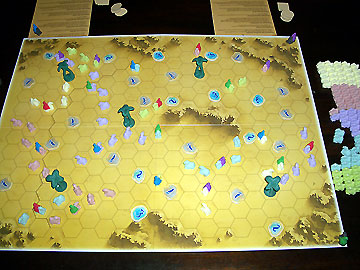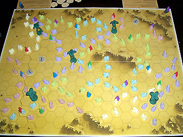 Juste après le placement initial des cavaliers, le plateau présente encore beaucoup d'espace libre, les oasis et autres points d'eau sont pour l'instant tous accessibles.