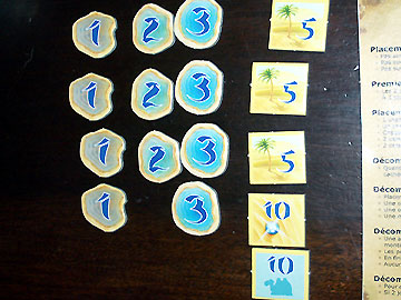 Les chameaux aux couleurs pastels font toujours leur petit effet, et c'est avec plaisir que nous procédons au placement initial de nos 5 cavaliers respectifs, placement qui conditionne beaucoup la suite de la partie et sur lequel j'ai beaucoup insisté....
