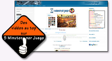 Ha oui et pour terminer cet édito, j'avais envie de vous parler de 5 Minutos por Juego, un site ibérique, mais dont le Webmestre, Stéphane, est en fait français (il est même originaire d'un village voisin du mien !). D'abord parce que le bougre nous concocte des vidéos de présentations absolument magnifiques, avec de vrais montages et une dynamique qui fait du bien aux mirettes (Stéphane est un pro de la vidéo et travaillait pour la TV espagnole), Ensuite parce que ses dernières vidéos sont déclinées en français et bénéficient de la voix suave d'Andrea (sa femme !) qui est parfaitement polyglotte...A découvrir d'urgence !