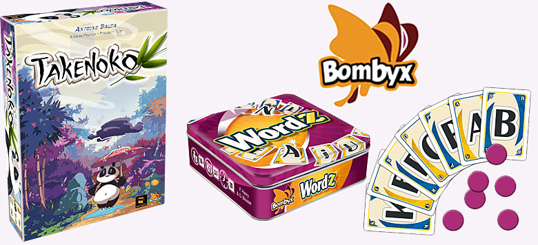 Vous le savez peut-être déjà : Hazgaard Editions ferme ses portes, mais ce n'est pas une fin pour autant ! car une nouvelle structure d'édition nommée Bombyx vient de voir le jour et derrière elle se cachent Erwan et Loïg, nos 2 compères de feu Hazgaard Editions. La raison de ce changement est simple : des associés qui ne sont plus sur la même longueur d'onde du côté des choix éditoriaux. Dont acte, fin d'Hazgaard Editions et création de Bombyx, qui nous annonce déjà 2 titres à venir. Le premier c'est la coédition avec Matagot sur Takenoko qui sortira après Essen (une coédition qui était prévue initialement avec Hazgaard), le second c'est WordZ de Frédéric Henry et Guillaume Blossier. WordZ est un jeu de mots basé sur la déduction et la prise de risque...à sortir prochainement (novembre ?).