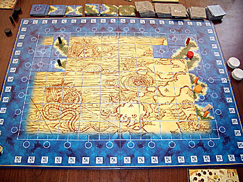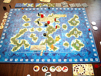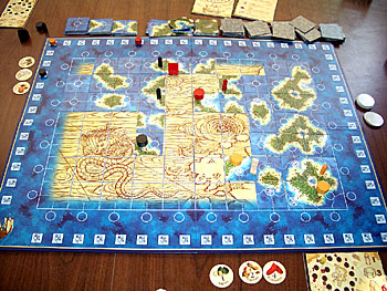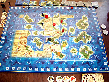 Chacun à récupéré les colonies, forts et autres comptoirs de sa couleur, les marqueurs de scores sont en place et les marqueurs de richesses sont sur 4, la partie peut débuter...