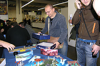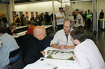 Sont pris par la patrouille : Serge et s douce (que l'infâme Jeff cache volontairement à droite sur la photo) en train de se la couler douce pendant que nous essayons désespérément de trouver une table pour jouer à Novembre rouge et Ad-Astra !
