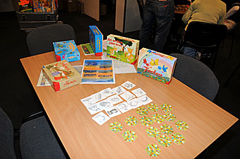 Ca c'est un plateau de Kaleidos et c'est le seul que vous verrez ! L'hôtesse, qui semblait un poil nerveuse, nous prenant pour d'infâmes copieurs de jeux, nous a sauté sur le paletot pour que nous arrêtions de photographier le jeu. Faut arrêter la camomille ma chère, ça ne vous réussi pas apparemment...