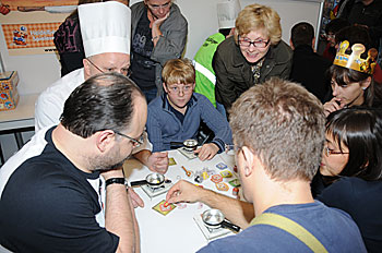 A la Carte (en français dans le titre !) est un jeu léger d'adresse très rigolo. Il faut placer les bons ingrédients dans sa casserole, en respectant les quantités, pour réaliser des recettes et gagner des étoiles. Nous l'avons testé en compagnie de Ludo qui s'est révélé très habile dans l'exercice et a remporté la partie (notez que je finis bon dernier, malgré une bonne crêpe Suzette de dernière seconde). Un bon moment de rigolade...