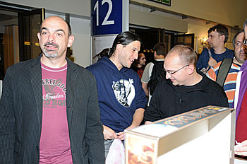 ...où Ludo vient de rejoindre Toinito et Bruno en pleine discussion de travail (bon ça c'est pour faire bien hein, parce qu'en fait, à part Bruno toujours très sérieux , ils ont plutôt l'air de déconner là).