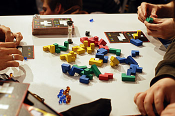 Colonia de Dirk Henn c'est la grosse nouveauté de Queen Games. La grosse boîte est pleine de matériel et graphiquement c'est plutôt sympa. Mécaniquement Colonia n'a rien de révolutionnaire mais le jeu fonctionne bien et se présente comme un bon jeu de gestion. A tester avant d'acheter.