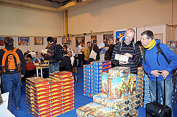 L'espace Queen Games sur le hall 5 était plutôt conséquent : ici on pouvait acheter mais aussi essayer les jeux de l'éditeur...